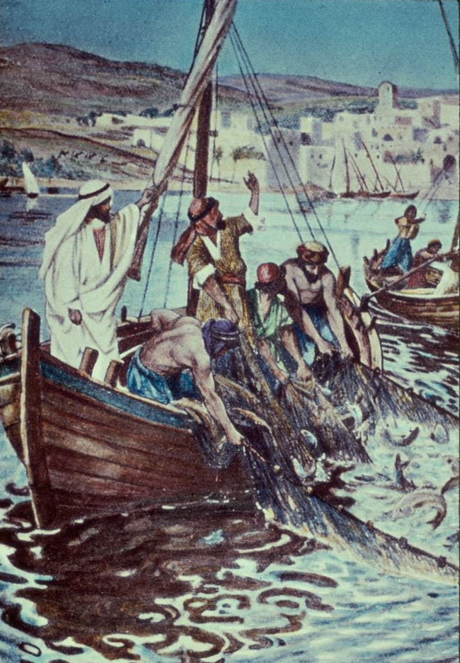 Luke 5:4–11 (ESV): 4 And when he had finished speaking, he said to Simon, “Put out into the deep and let down your nets for a catch.” 5 And Simon answered, “Master, we toiled all night and took nothing! But at your word I will let down the nets.” 6 And when they had done this, they enclosed a large number of fish, and their nets were breaking. 7 They signalled to their partners in the other boat to come and help them. And they came and filled both the boats, so that they began to sink. 8 But when Simon Peter saw it, he fell down at Jesus’ knees, saying, “Depart from me, for I am a sinful man, O Lord.” 9 For he and all who were with him were astonished at the catch of fish that they had taken, 10 and so also were James and John, sons of Zebedee, who were partners with Simon. And Jesus said to Simon, “Do not be afraid; from now on you will be catching men.” 11 And when they had brought their boats to land, they left everything and followed him.